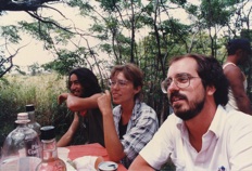 Left: picnic on Easter Island, Suzanne Carbotte on my right. Notice that I used to have lots of hair...