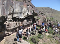 Left: Teaching at the Buffalo Valley volcanic field, central Nevada, 2015. Tight: The group on the 2008 Hawaii field course at Lanai Lookout, Oahu.