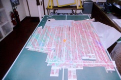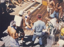 Left: SeaMARC II strip chart map, Galapagos Spreading Center. Right: Participating in the Equator Crossing Ceremony on RV Moana Wave.