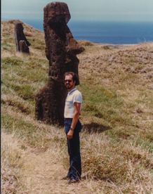 Right: In 1987 on Easter Island, taking in the moai at Rano Raraku quarry.